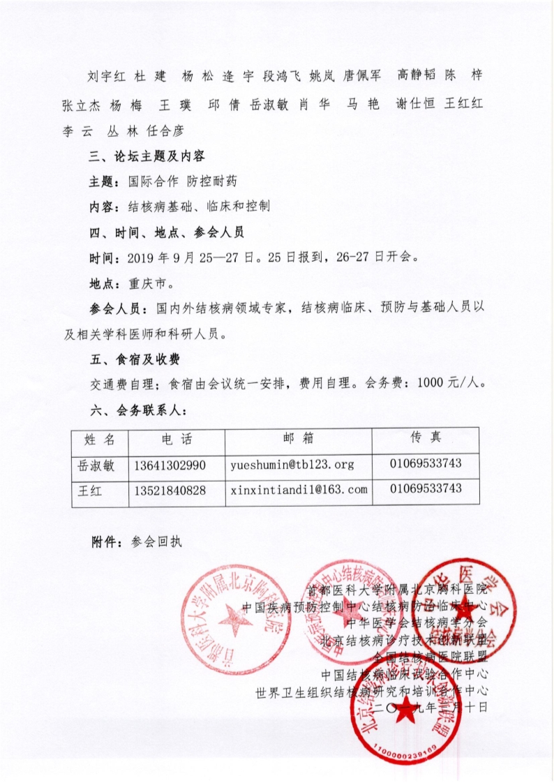 第五届“国际结核病国际论坛”第一轮通知