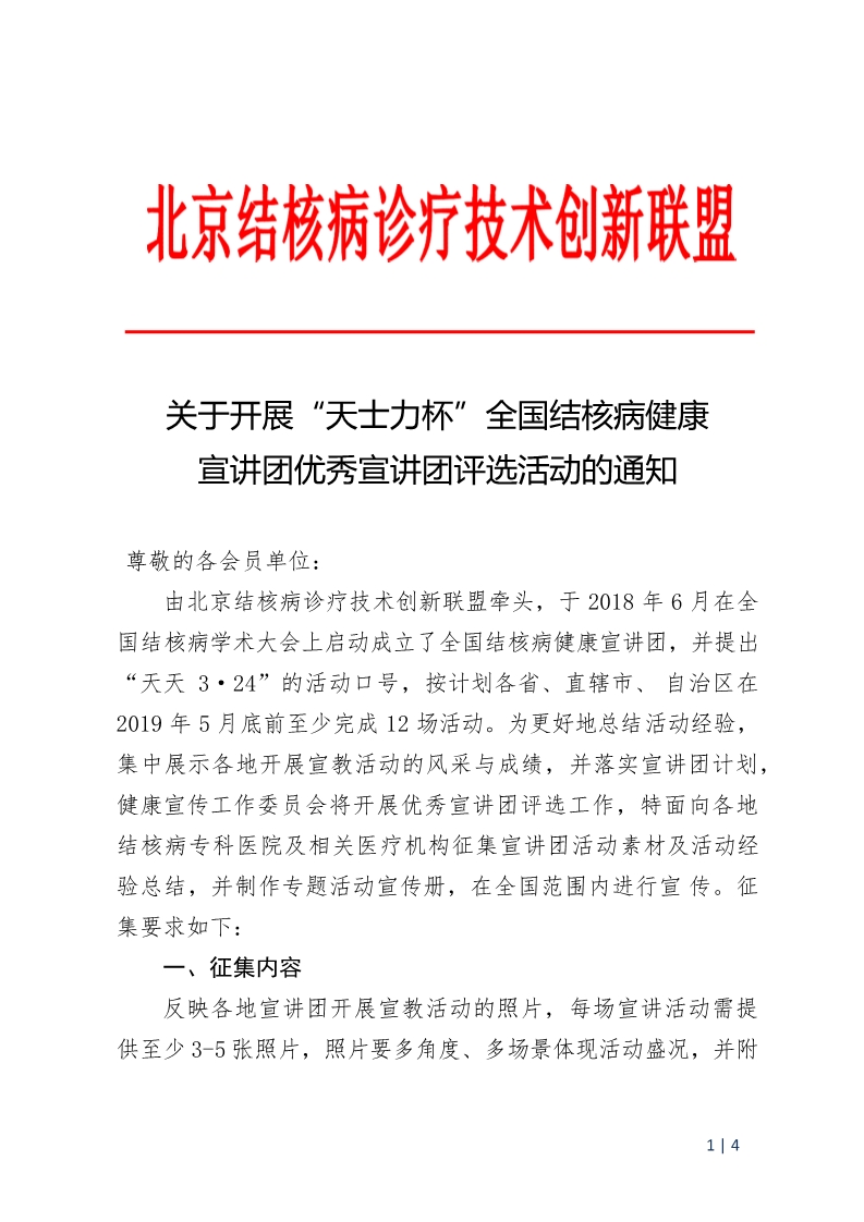 关于开展“天士力杯”全国结核病健康宣讲团优秀宣讲团评选活动的通知
