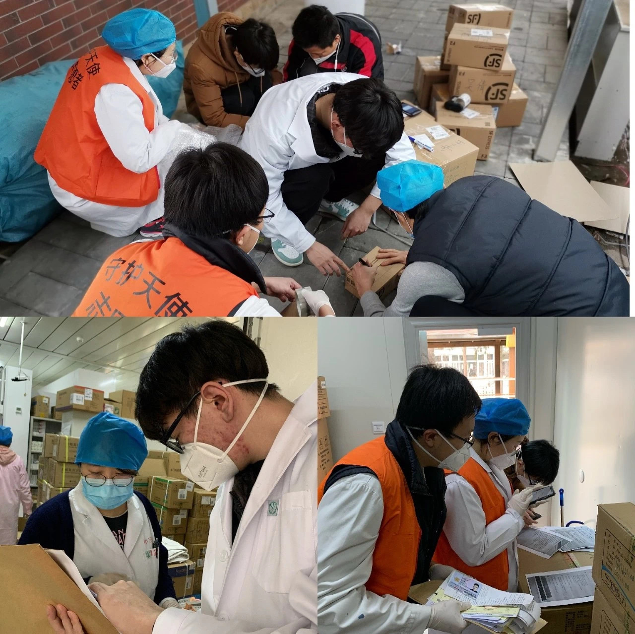 志愿者正在核对患者药物以及邮寄信息,准备为14位慢病患者寄出药物。