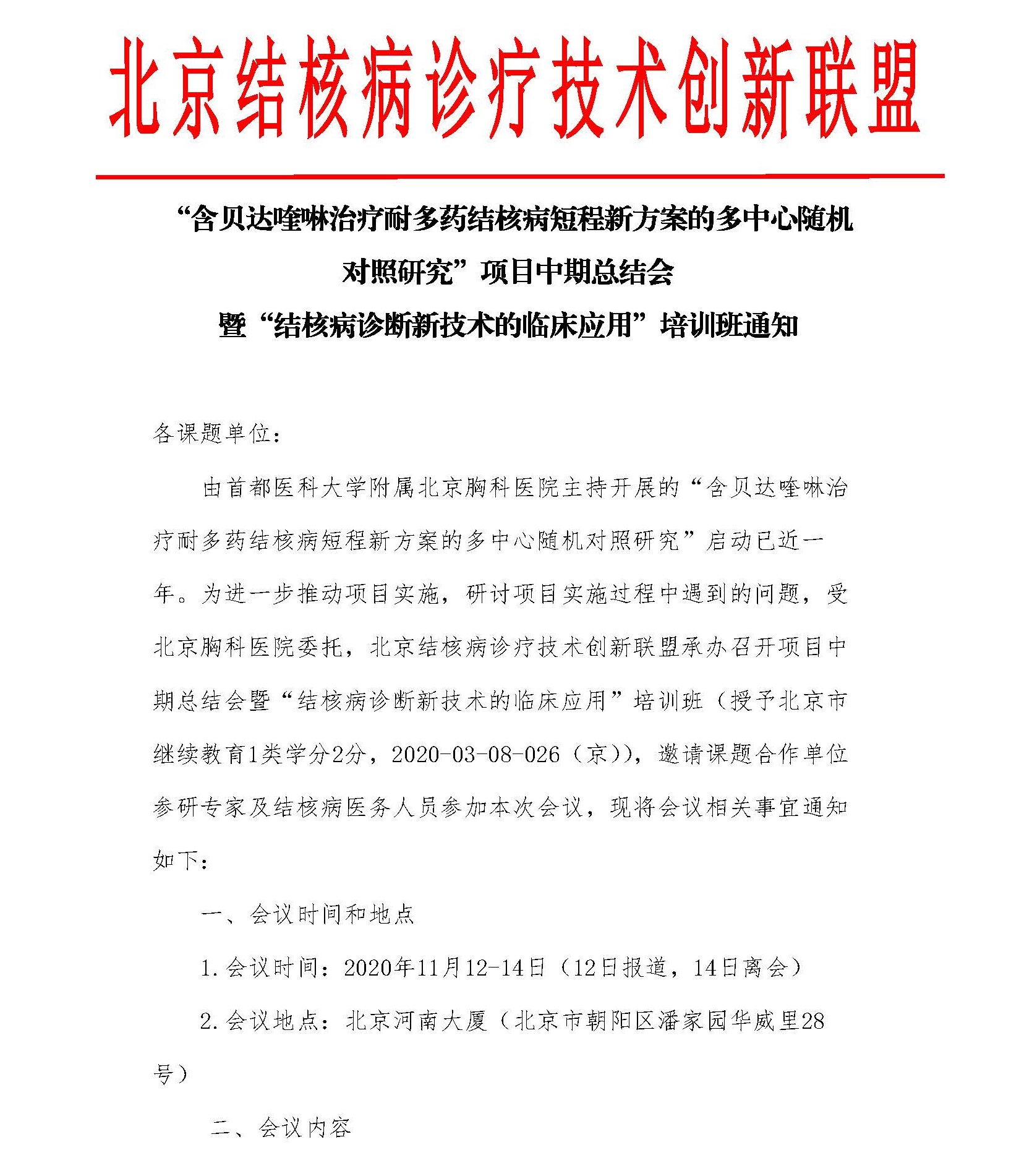 【会议通知】“含贝达喹啉治疗耐多药结核病短程新方案的多中心随机对照研究”项目中期总结会暨“结核病诊断新技术的临床应用”培训班通知